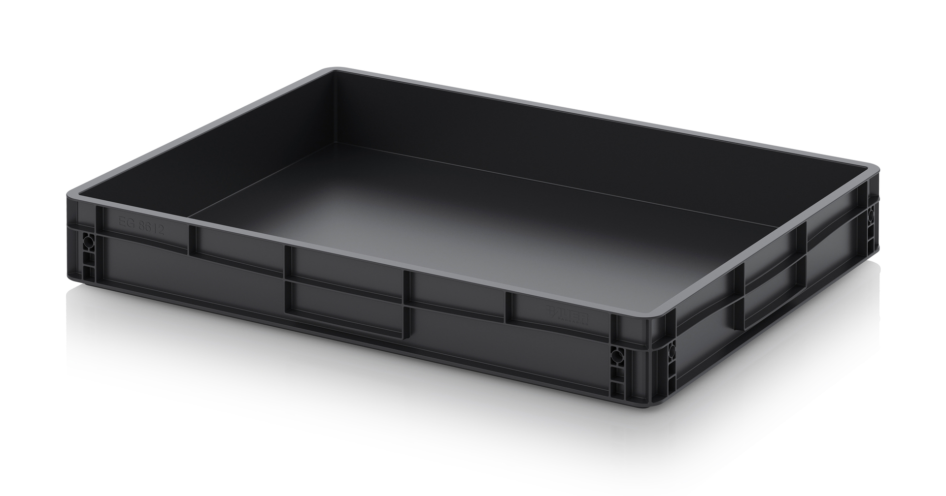 Евроконтейнер с ESD-защитой производства компании AUER Packaging изготавливается из антистатической пластмассы, что делает его пригодным, в частности, для надежного хранения и транспортировки электронной продукции.