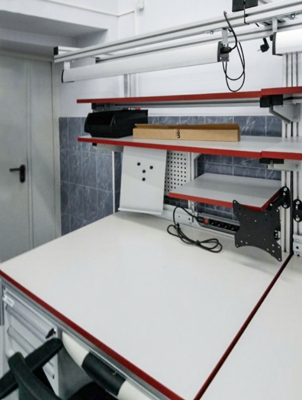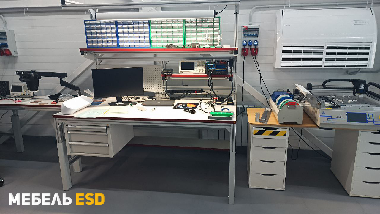 В антистатическом исполнении, согласно требованиям стандарта ГОСТ IEC 61340-5-1-2019, столешница на лицевой стороне имеет маркировку