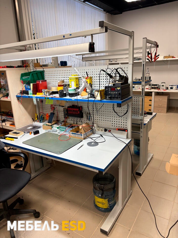 Стол антистатический, согласно требованиям стандарта ГОСТ IEC 61340-5-1-2019, на лицевой стороне столешницы имеет маркировку
