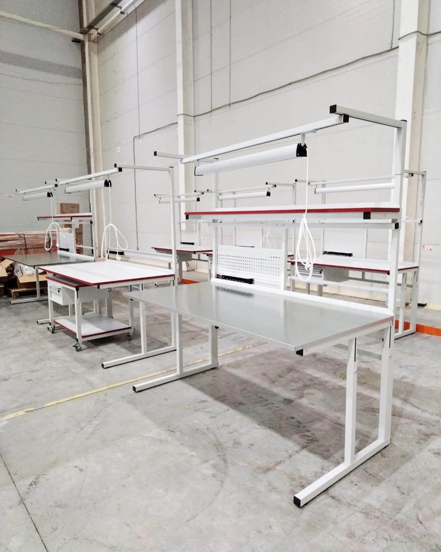 Стол имеет металлический каркас и изготавливается в промышленном и антистатическом исполнении.
