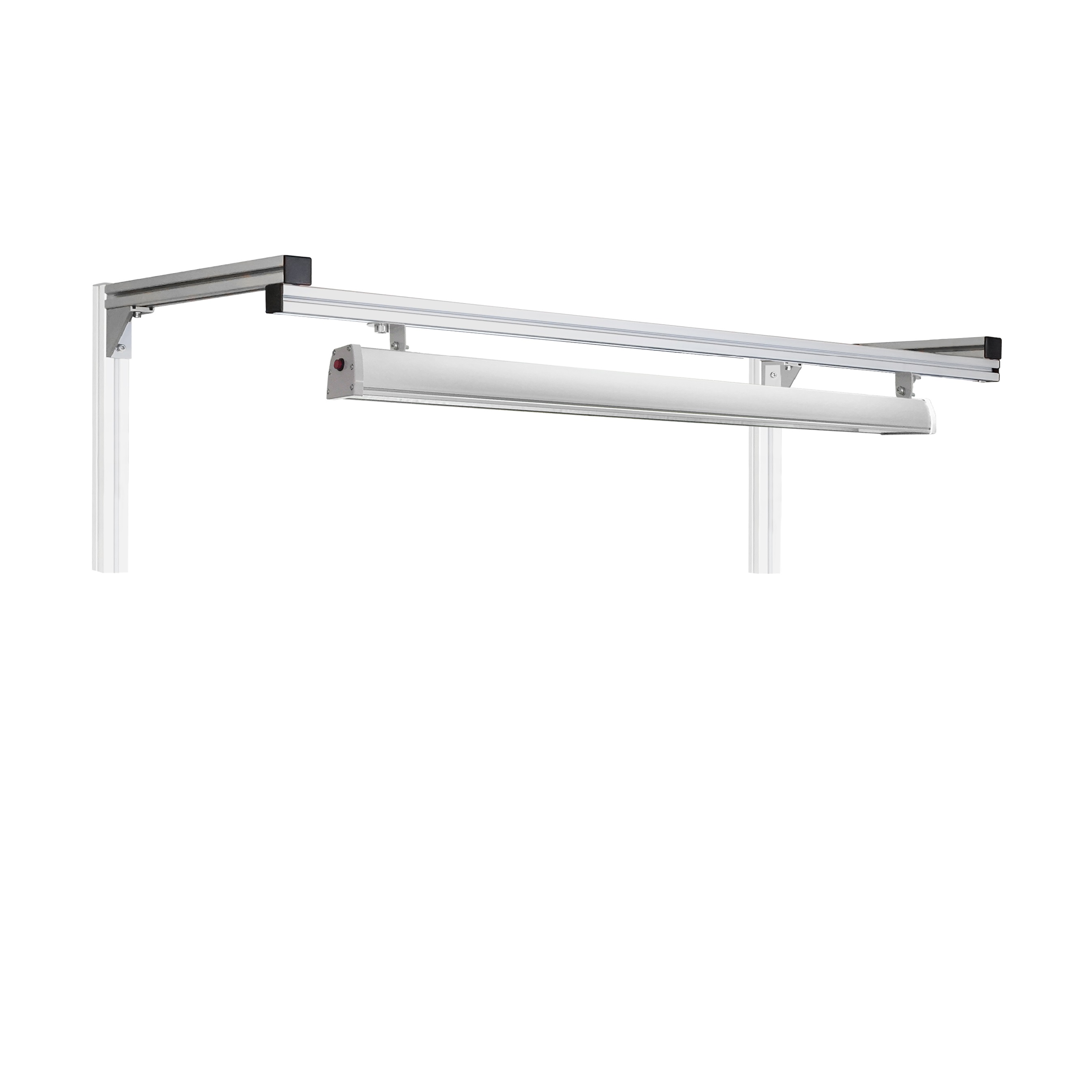 Комплект освещения светодиодный из конструкционного профиля фиксируется на задние стойки на кронштейнах Г-образной формы, регулируется по высоте от уровня столешницы от 400 до 1400 мм, с помощью держателей регулируется направления потока света.
