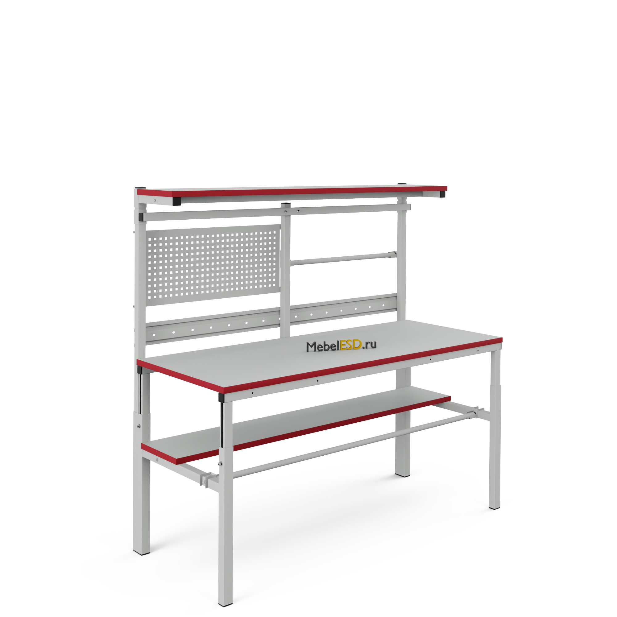 Металлический каркас стола выполнен из П-образного профиля, покрытого износостойкой порошковой краской светло-серого цвета RAL7035. Высота столешницы регулируется в пределах от 650 мм до 950 мм. Распределенная нагрузка на стол — до 300 кг. Конструкция стола позволяет оснастить его дополнительным оборудованием.