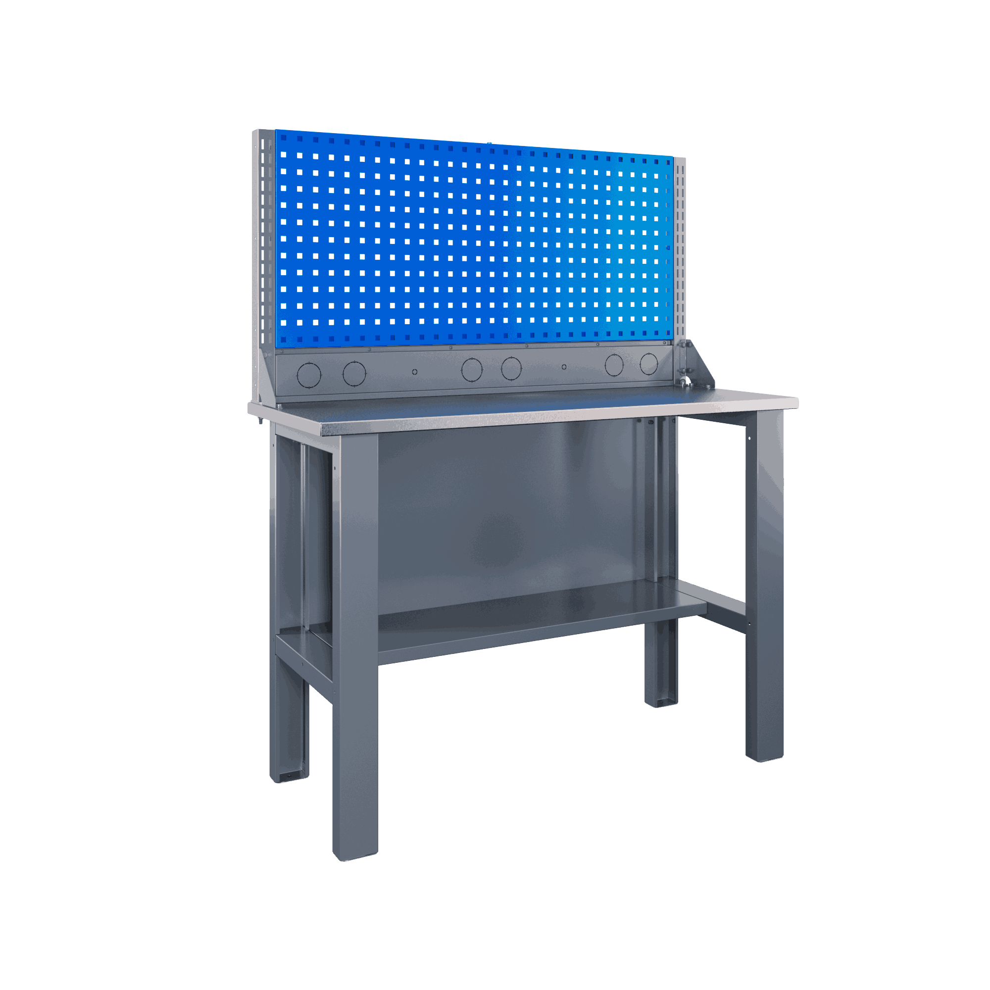 Самые компактные верстаки с глубиной столешницы 500 мм. Благодаря небольшой глубине, такие верстаки легко размещаются в ограниченных пространствах, например, в гаражах, мастерских и тд. Несмотря на компактные размеры, верстаки могут быть оснащены полками, ящиками и держателями для инструментов, что помогает поддерживать порядок и быстро находить нужные предметы.