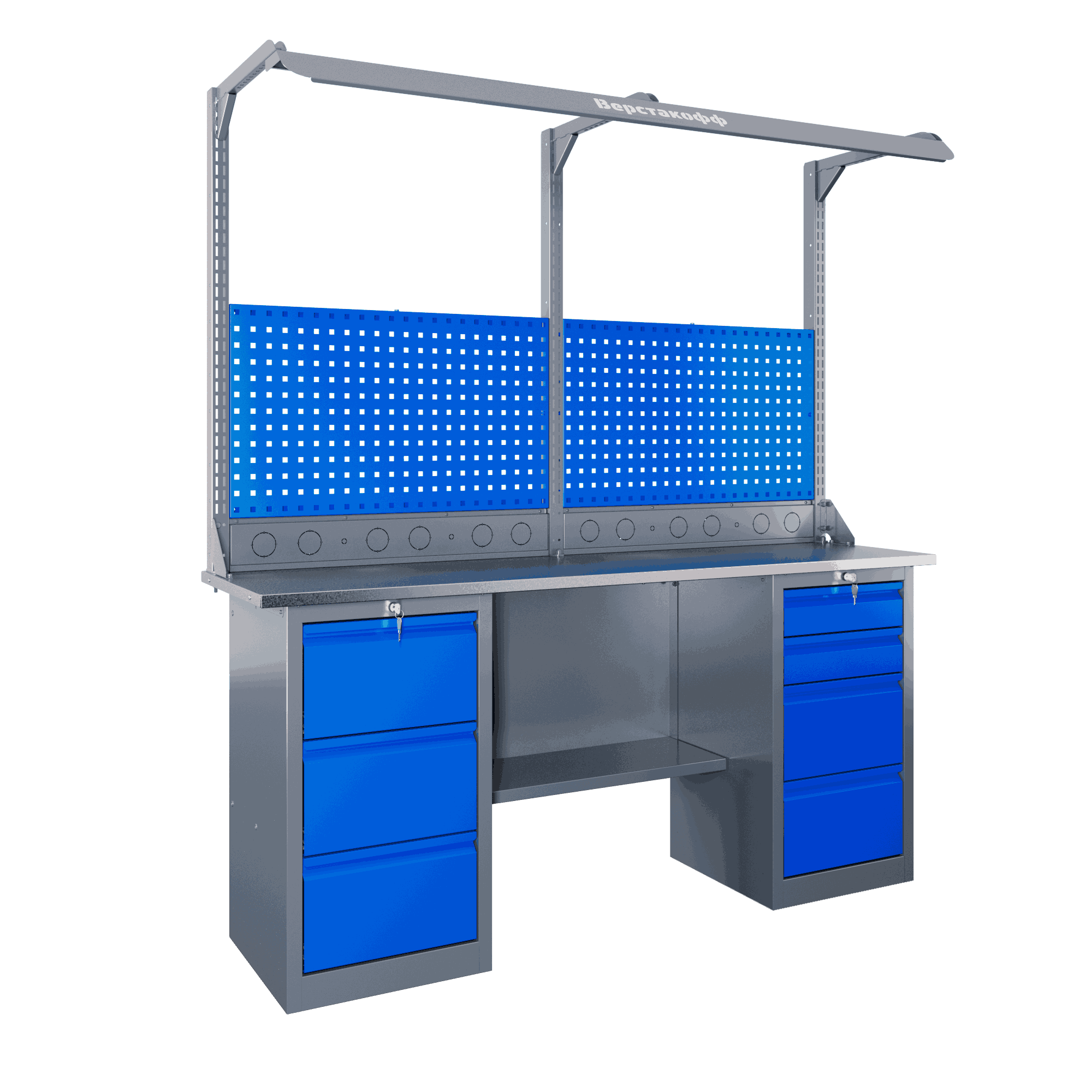 Самые компактные верстаки с глубиной столешницы 500 мм. Благодаря небольшой глубине, такие верстаки легко размещаются в ограниченных пространствах, например, в гаражах, мастерских и тд. Несмотря на компактные размеры, верстаки могут быть оснащены полками, ящиками и держателями для инструментов, что помогает поддерживать порядок и быстро находить нужные предметы.
