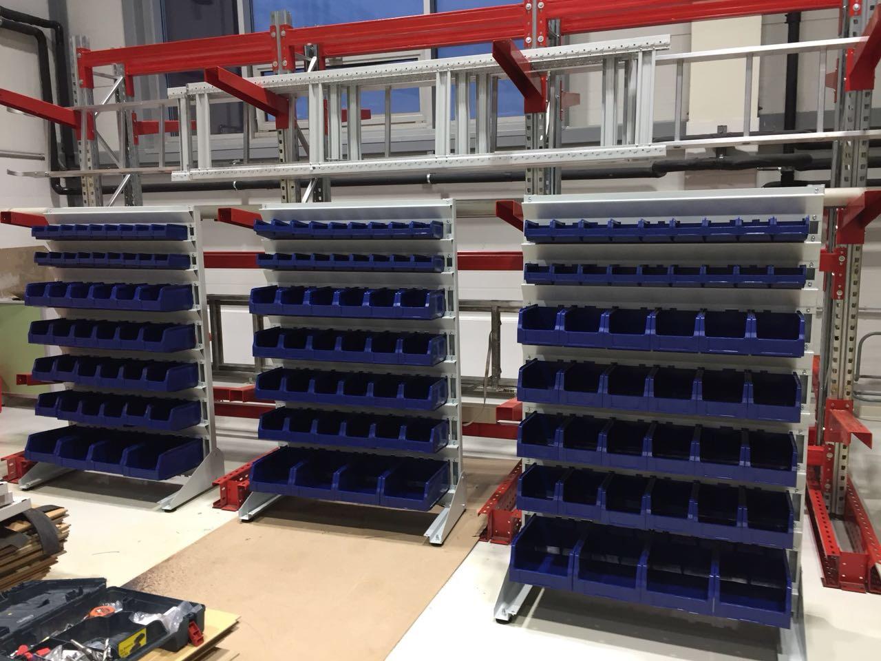 - Стеллажи могут комплектоваться лотками двух цветов: синий и красный, а также могут отгружаться и без лотков