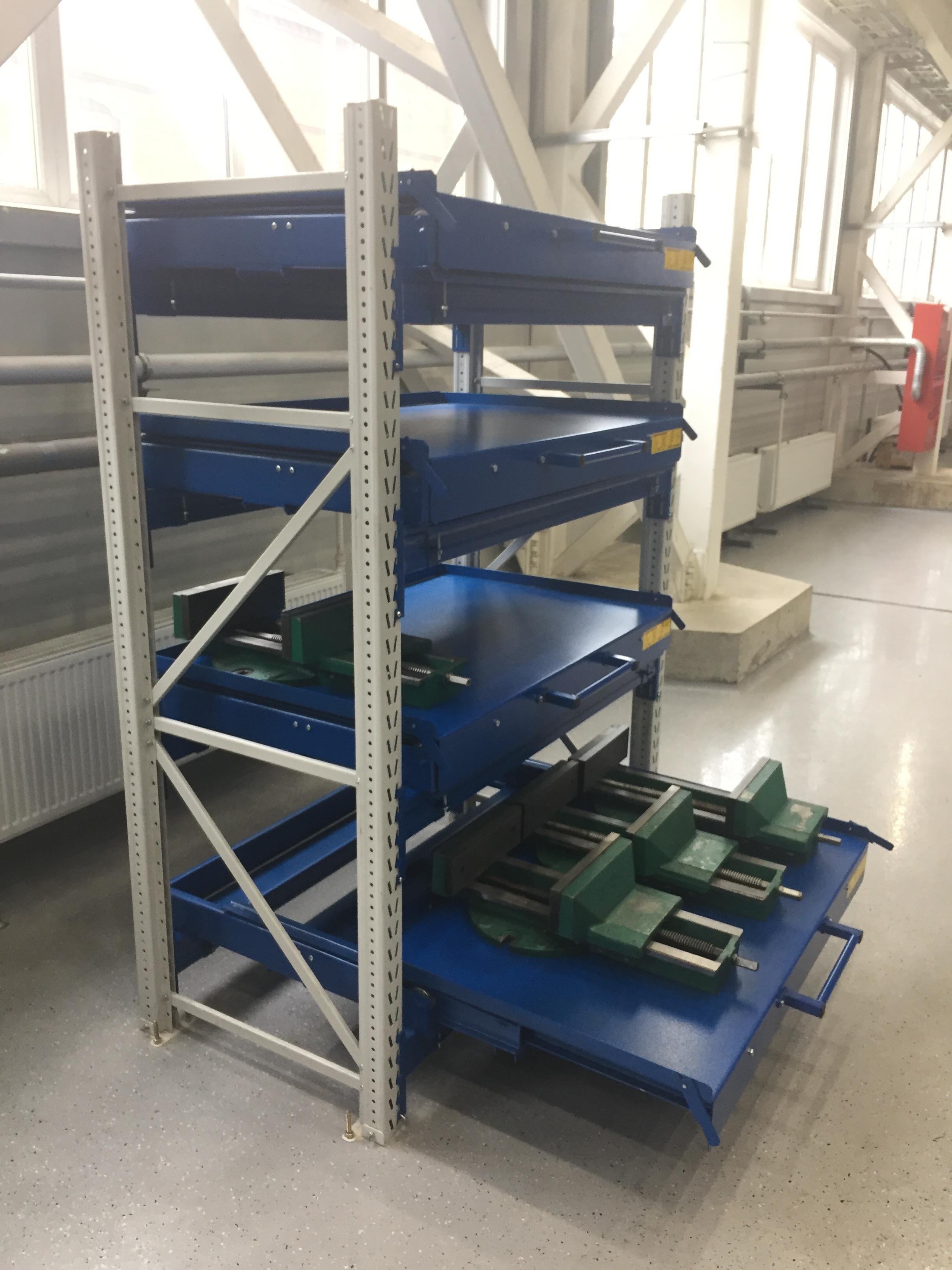 ER-00023585 Стеллаж с выкатными платформами S-HEAVY 1000/1300 (4 яруса хранения)