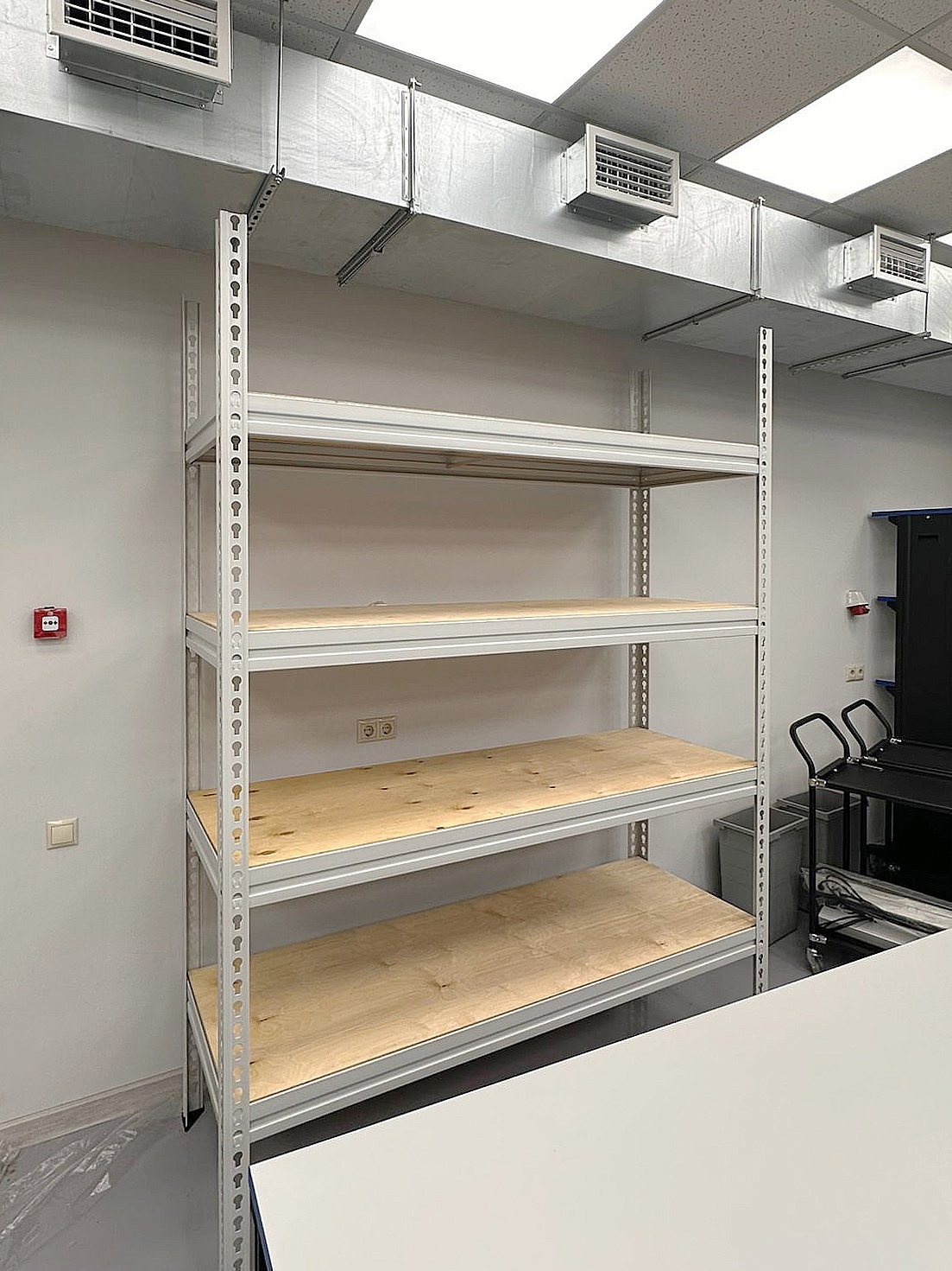 Стеллаж усиленный используется для размещения тяжелых предметов, оборудования, комплектующих и т.п.. В стандартной комплектации стеллаж поставляется с четырьмя полками и комплектом крепежа. Стойки изготовлены из металла и выдерживают равномерно распределенную нагрузку на секцию до 2200 кг. Поставляются в комплекте с пластиковыми подпятниками. Основания полок изготовлены из металла, настил — из влагостойкой фанеры, что позволяет выдерживать равномерно распределенную нагрузку до 300 кг. Конструкция стеллажа позволяет оснащать его дополнительными полками. Стеллажи окрашены износостойкой и влагостойкой порошковой краской светло серого цвета RAL-7035.