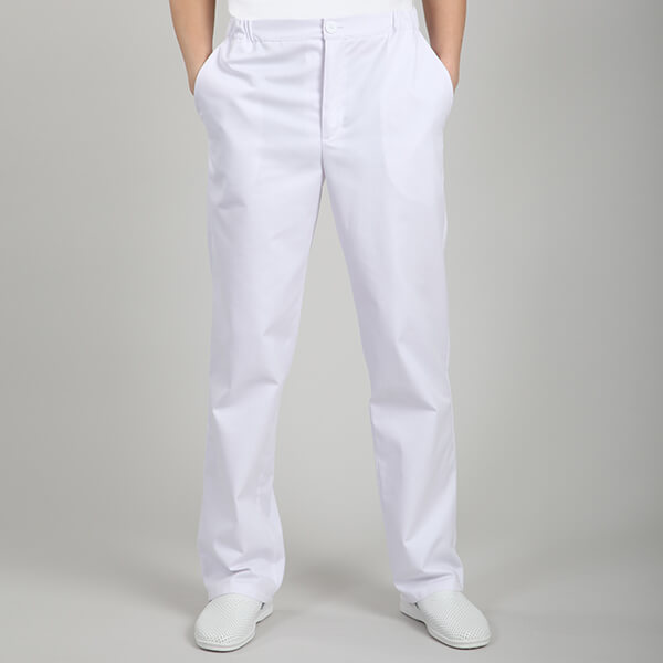 Брюки модельные, прямые, немного заужены к низу, на полужестком поясе с застежкой на кнопку, гульфик на молнии. Карманы в боковых швах. Накладной карман сзади. В правый боковой шов вшит знак EPA. Модельные особенности призваны способствовать выполнению требований к промышленной чистоте. На внешней стороне брюк настрочена нашивка с надписью «Одежда технологическая для персонала чистых помещений», с таблицей циклов обработки и датой выпуска изделия. Все соединительные швы окантованы. Вентиляционные элементы расположены на задних половинках брюк, если изделие изготовлено из ткани «Поликарбон». Если изделие изготовлено из тканей «Электра», «Арт. 16405», вентиляционные элементы отсутствуют.